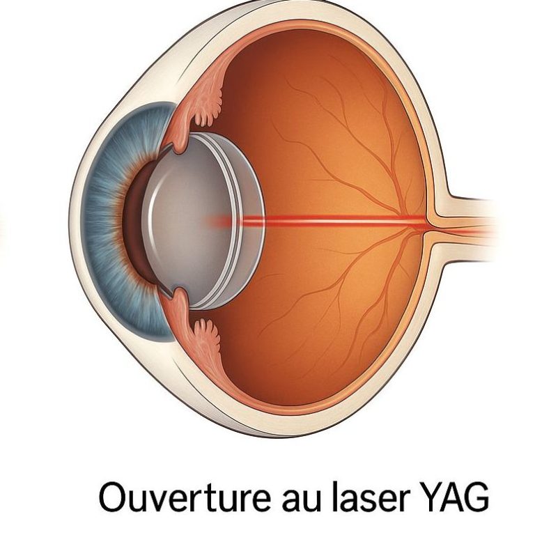 En cas d’opacification secondaire de la capsule postérieure après chirurgie de la cataracte, il est possible de réaliser une capsulotomie au laser YAG.